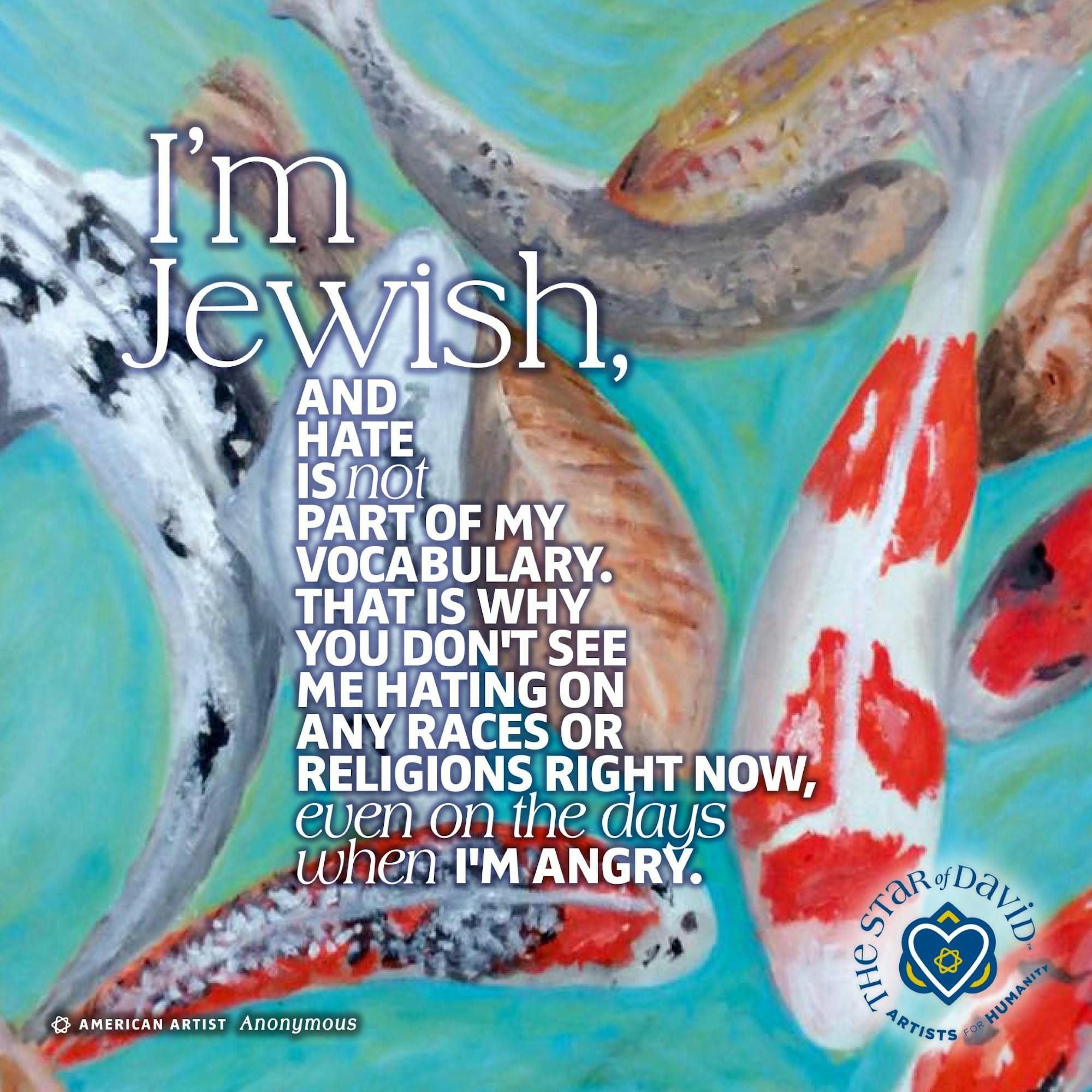 Robbie Lasky, a retired teacher living in Nashville, now creates art full time. One post features her painting of koi fish swimming in a pond, underneath text that reads, “I’m Jewish, and hate is not part of my vocabulary. That is why you don’t see me hating on any races or religions right now, even on the days when I’m angry.”