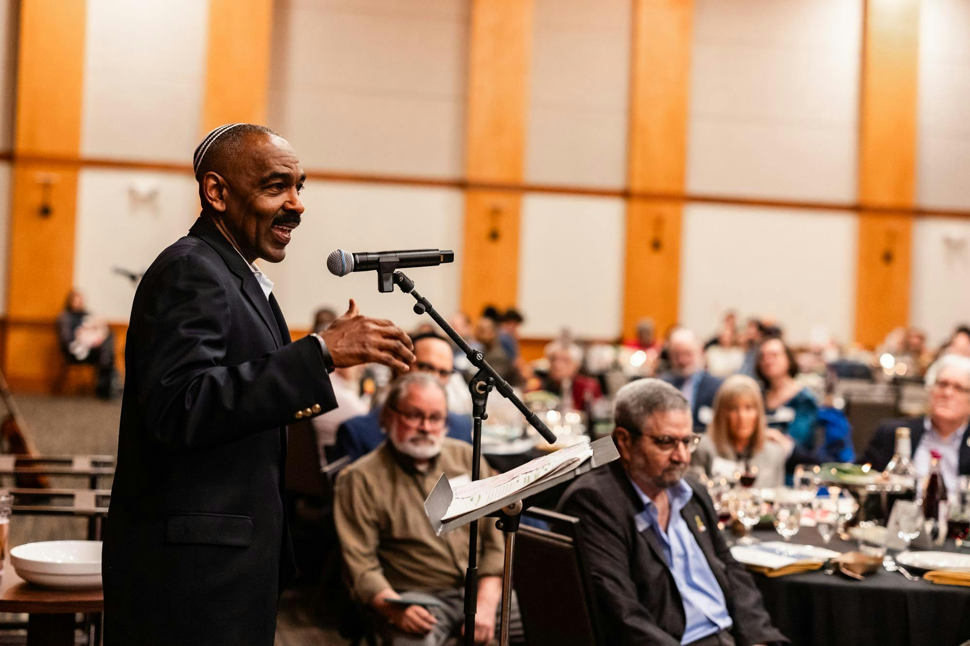 Despite some challenging weather, approximately 250 people attended this year’s Jewish Community Relations Committee Social Justice Seder, featuring special guest Sloan Luckie. Luckie, a lay pastor and youth mentor in his hometown of Chicago, spoke about his passion for studying the Old Testament in its original language, and the connections between the Jewish and Christian faith traditions. The seder was led by Rabbi Saul Strosberg of Congregation Sherith Israel and included musical selections by Cantor Tracy Fishbein and musician Brett Fromson. The event was chaired by Danny Goldberg and Sara Roth.